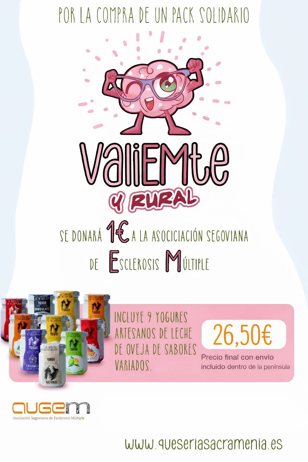 Con cada pack ValiEMte y rural, quesería artesanal de Sacramenia donará 1 € a la asociación segoviana de Esclerosis Múltiple.